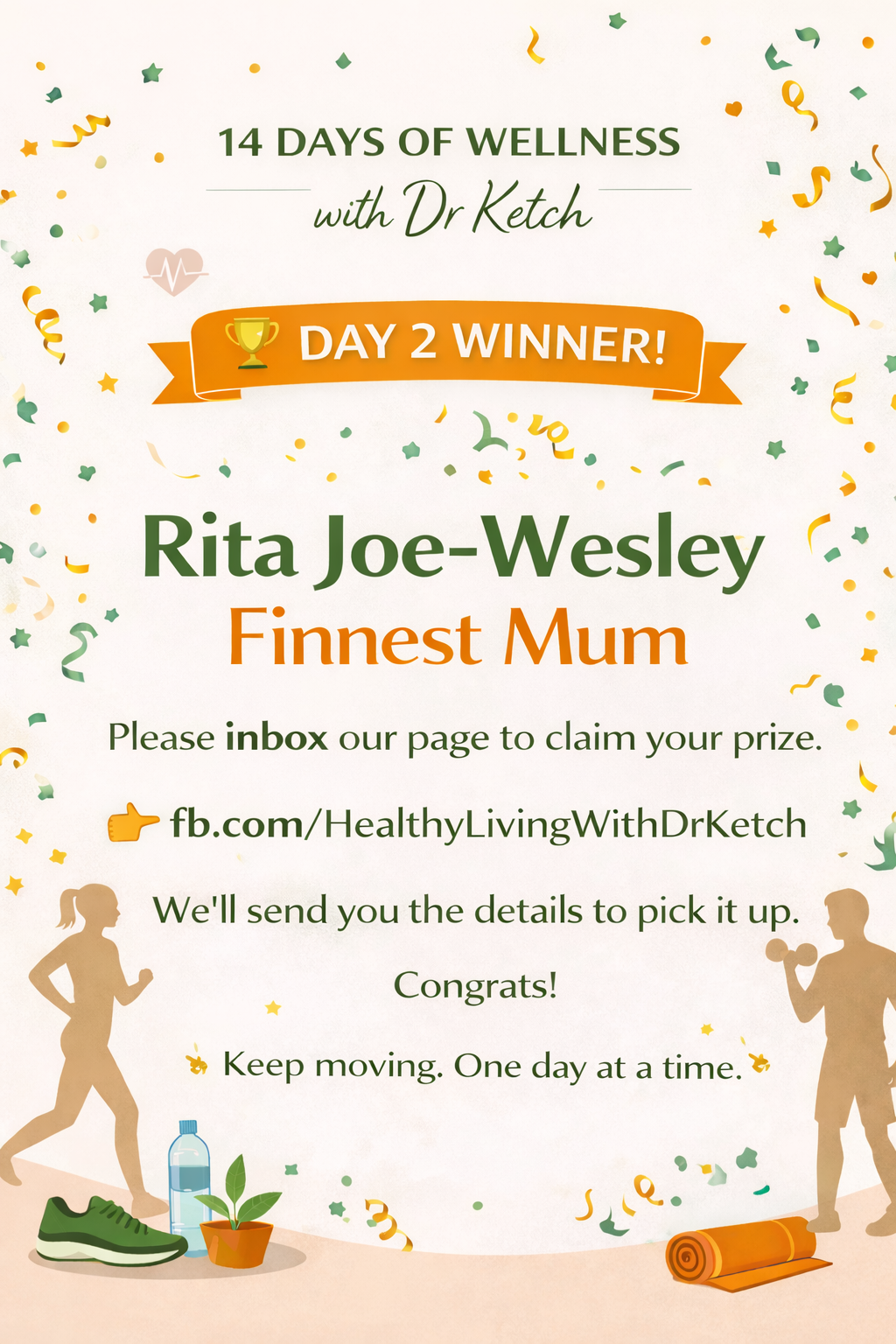 Congratulations to Alice Okeke for participating in the 14 Days of Wellness with Dr Ketch and sharing her commitment to staying active and healthy.