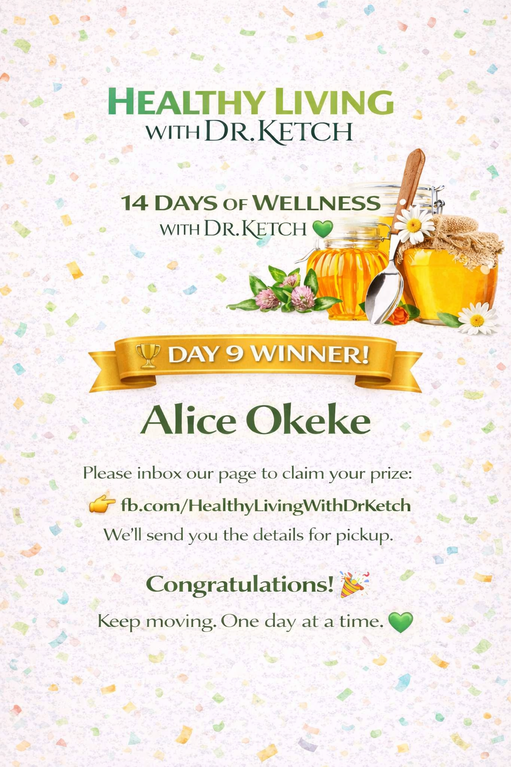 Congratulations to Alice Okeke for participating in the 14 Days of Wellness with Dr Ketch and sharing her commitment to staying active and healthy.