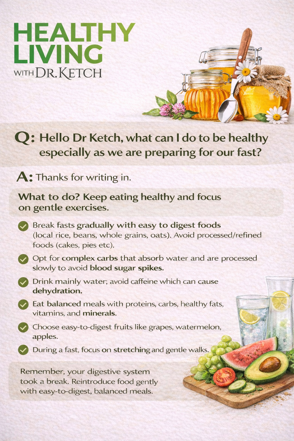 Q: Hello Dr Ketch, what can I do to be healthy especially as we are preparing for our fast?