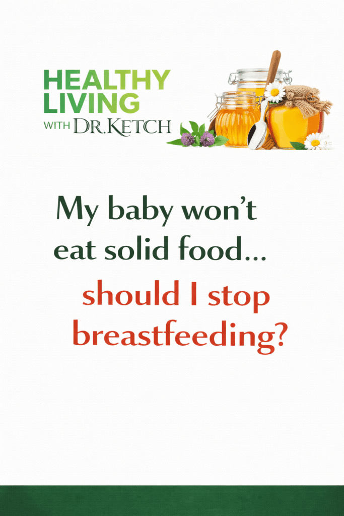 Q: Hello Dr Ketch, my baby is 10 months old. She doesn’t like baby food… not even milk. She takes very little solid food. My mother-in-law is telling me to stop breastfeeding so she can eat properly. I did exclusive breastfeeding for 7 months. What should I do?